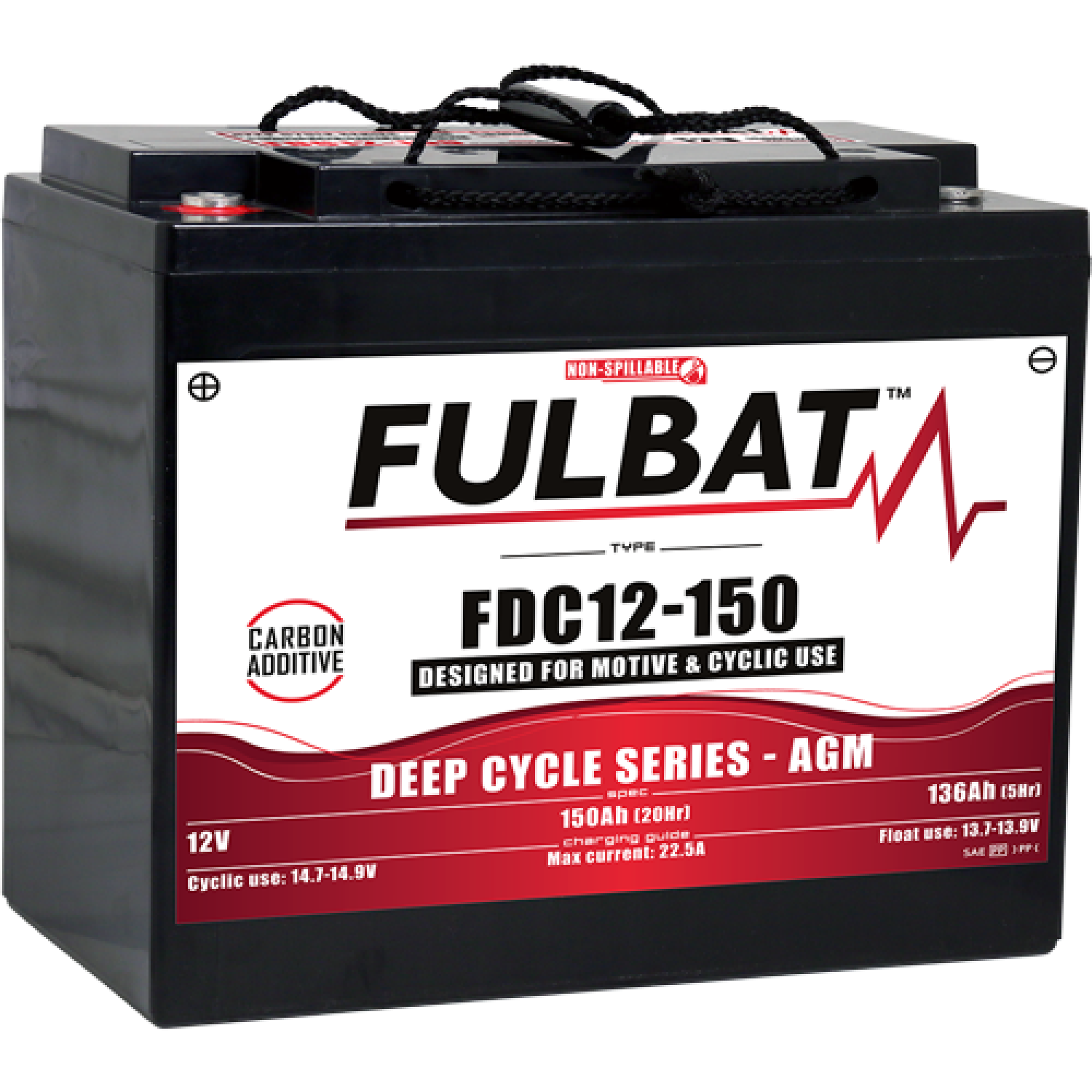 FDC12-150 je součástí našich karbonových baterií FDC – Deep Cycle AGM. Tato 12V 150Ah baterie, speciálně navržená pro časté vybíjení s hlubokými cykly, nabízí nízké samovybíjení a zajišťuje maximální životnost s vysokou odolností proti cyklům díky zesíleným mřížkovým deskám.