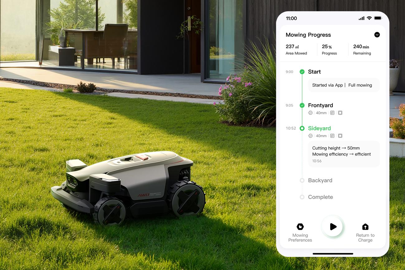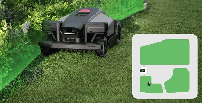 Sekačka dynamicky přizpůsobuje trajektorii jízdy, zkracuje dobu sečení a zajišťuje rovnoměrný výsledek po celé ploše bez nutnosti manuálních zásahů. Veškeré nastavení, plánování i správa zón probíhá v mobilní aplikaci, která poskytuje přehled a pohodlnou kontrolu nad provozem sekačky.