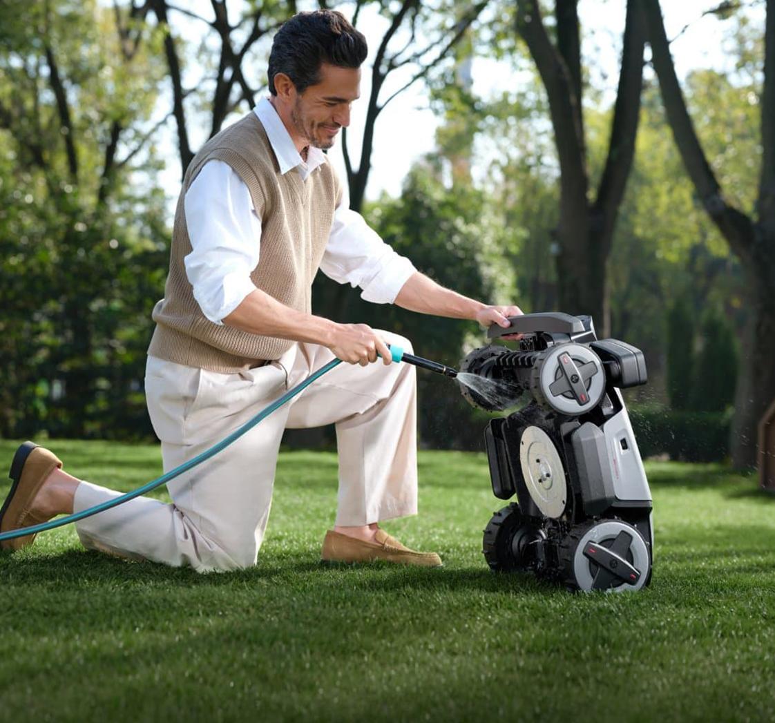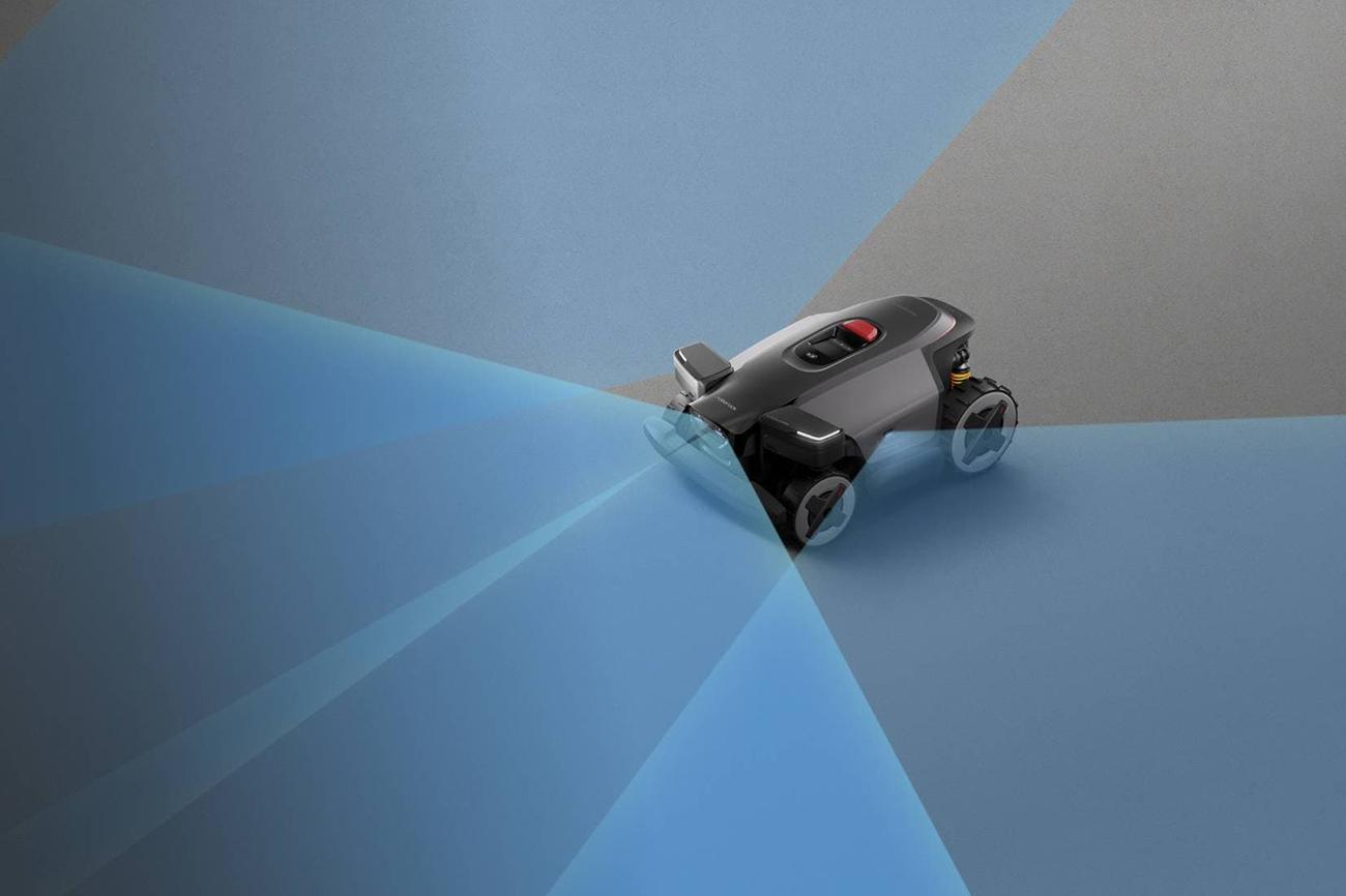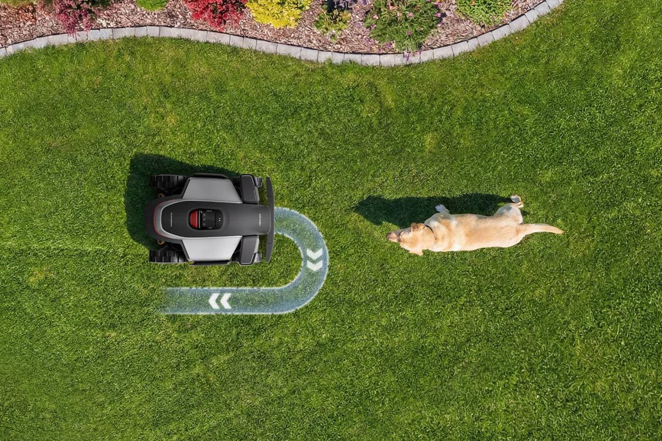 Během sečení spolehlivě rozpozná statické i pohyblivé překážky, plynule je objíždí, bezpečně mění směr a pokračuje bez zbytečných zastavení.