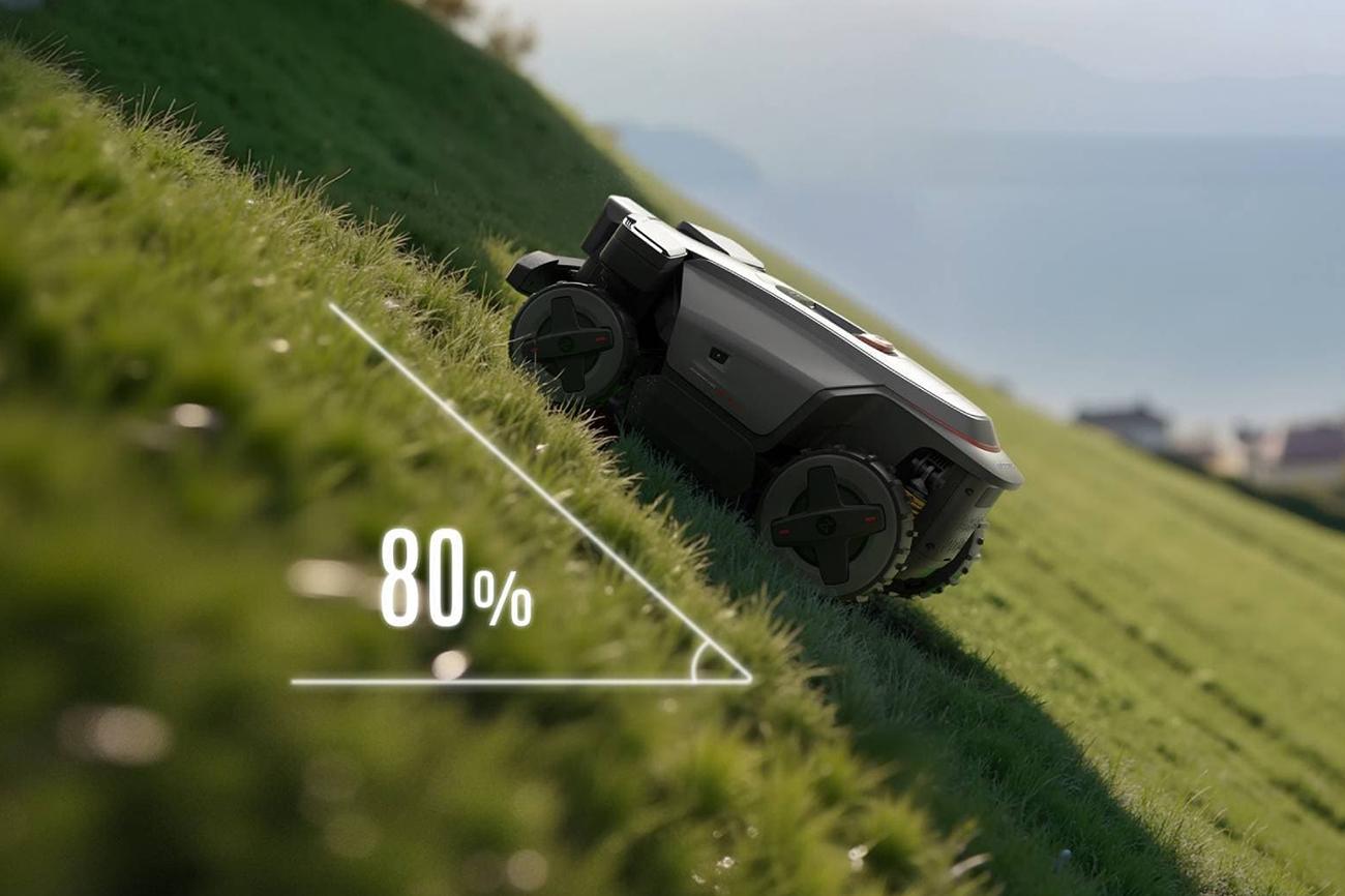 RockMow Z1, vybavený pokročilým pohonem všech kol (AWD), bez námahy zvládá svahy až do sklonu 80% (38,7°) 1.