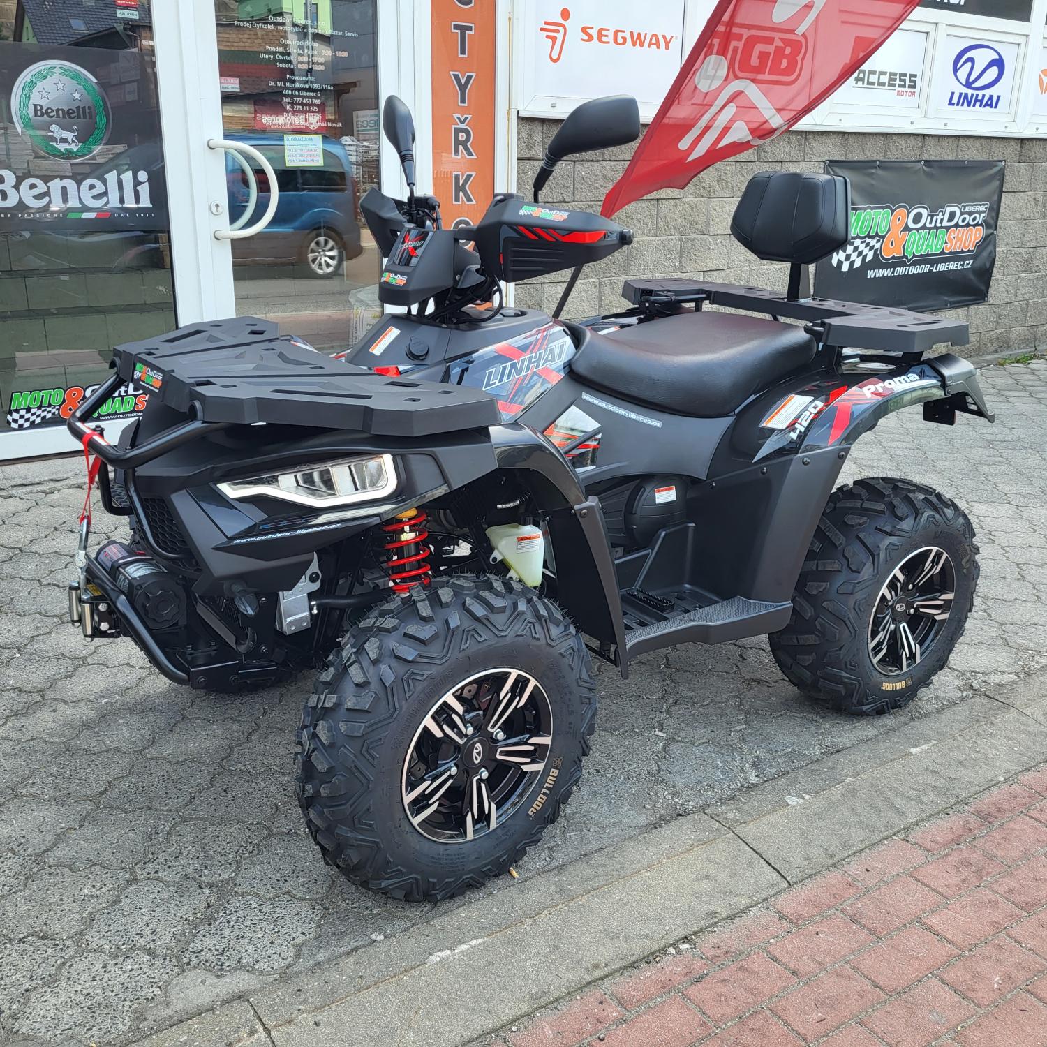 I přes svoji vynikající cenu nabízí Linhai 420 Promax již v základu skutečně bohatou výbavu. Ta zahrnuje kromě LED osvětlení například i atraktivní ALU kola, elektrický naviják s tažnou silou 3000lbs a dálkovým ovládáním nebo tažné zařízení. Nechybí masivní nárazníky vpředu a vzadu, moderní kompozitní nosiče, kryty rukou nebo praktická akustická signalizace blikačů..