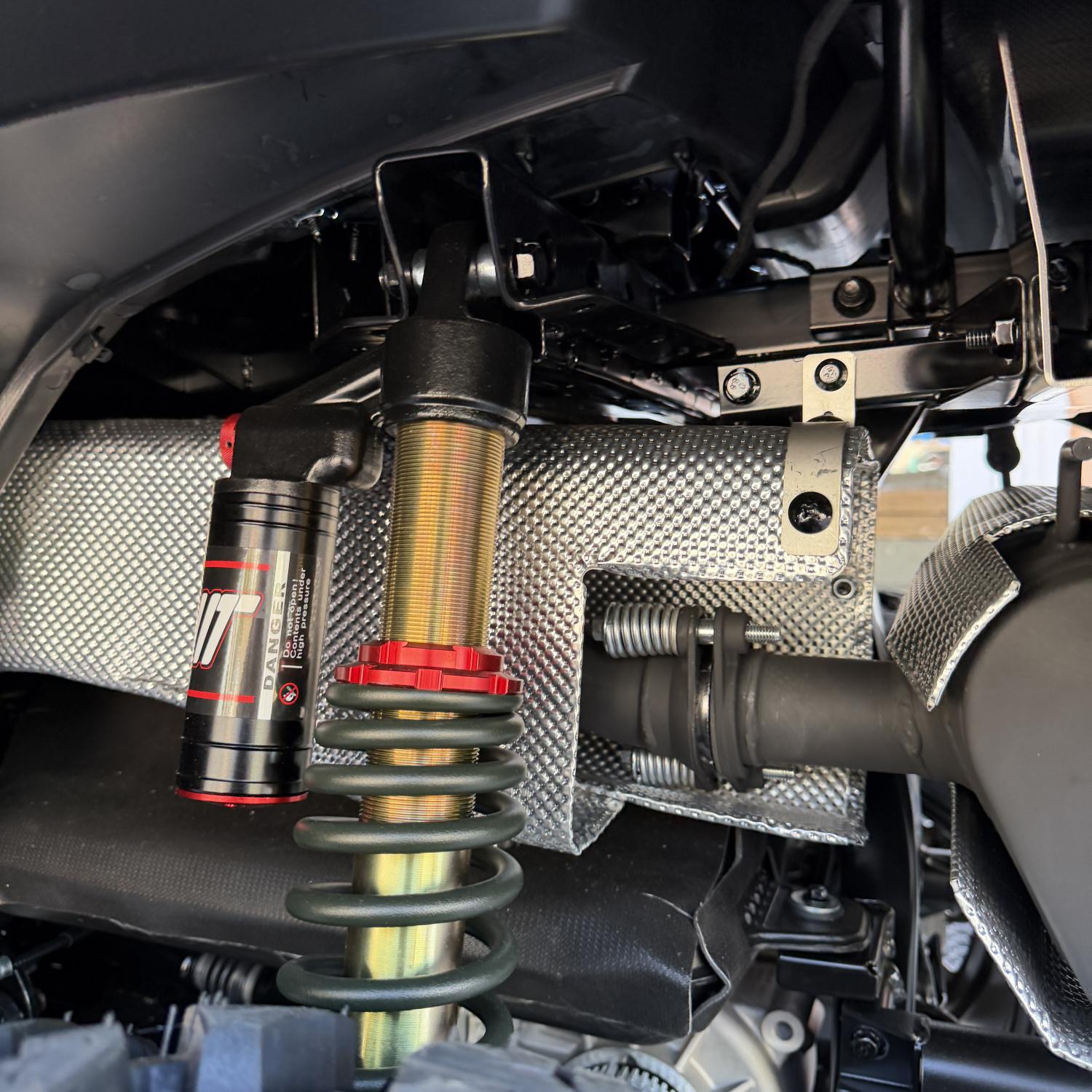 Tlumiče s oddělenou expanzní nádobkou umožňují samostatné nastavení komprese i odskoku. Podvozek lze přesně naladit podle zatížení, stylu jízdy a charakteru terénu, což přispívá k vyšší stabilitě, trakci a kontrole při práci i dynamické jízdě.