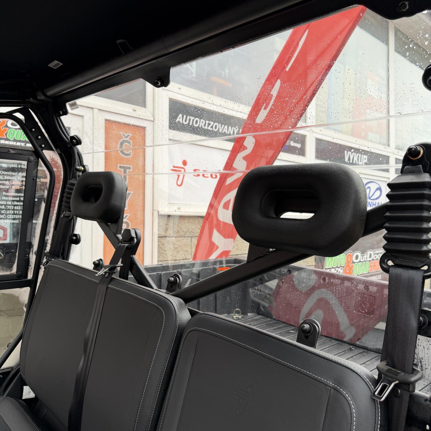 Elektrický naviják 4500 lbs, inteligentní elektrický posilovač řízení, TFT digitální přístrojová deska, 10,4" dotyková obrazovka Smart Commanding Screen (SCS), couvací kamera, tažné zařízení, nastavitelný volant, anatomicky tvarovaná sedadla s hlavovou opěrkou, tříbodové pásy, přední ochranný rám, pevné boční dveře, pevná střecha, velká sklopná korba, 14" hliníkové disky, poloviční čelní plexi.