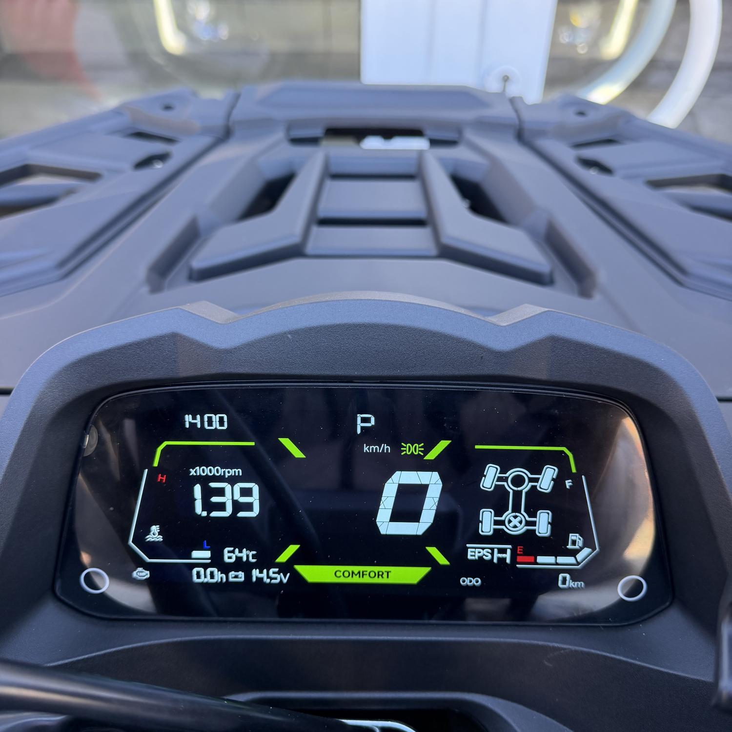 Elektrický posilovač řízení, elektrický naviják, sedadlo s opěrkou zad, tažné zařízení, kompozitní nosiče vpředu i vzadu, digitální multifunkční displej, Full-LED osvětlení, přední ochranný rám, zadní ochranný rám, boční ochranné rámy, 14" hliníkové disky, nastavitelné pérování s progresivně vinutými pružinami, ochranné kryty rukojetí