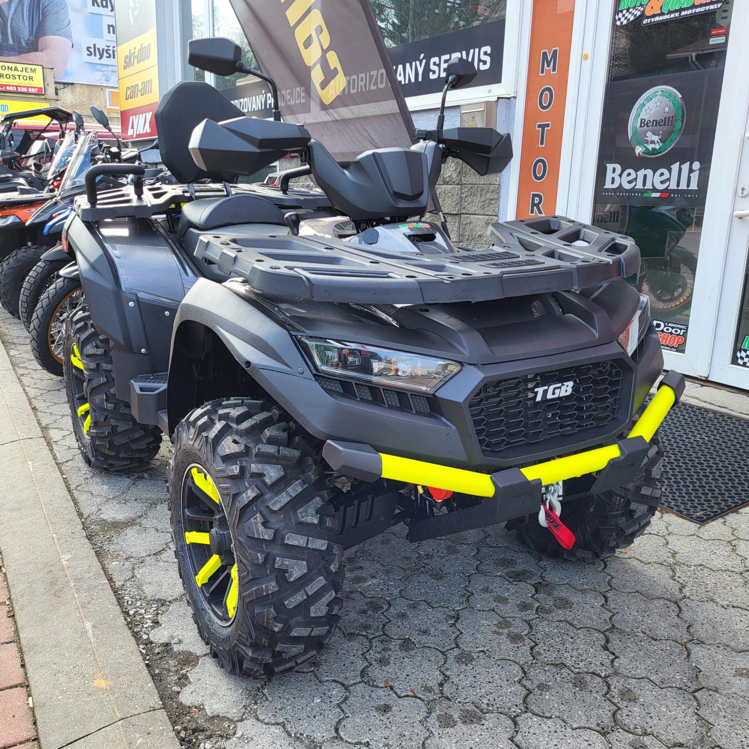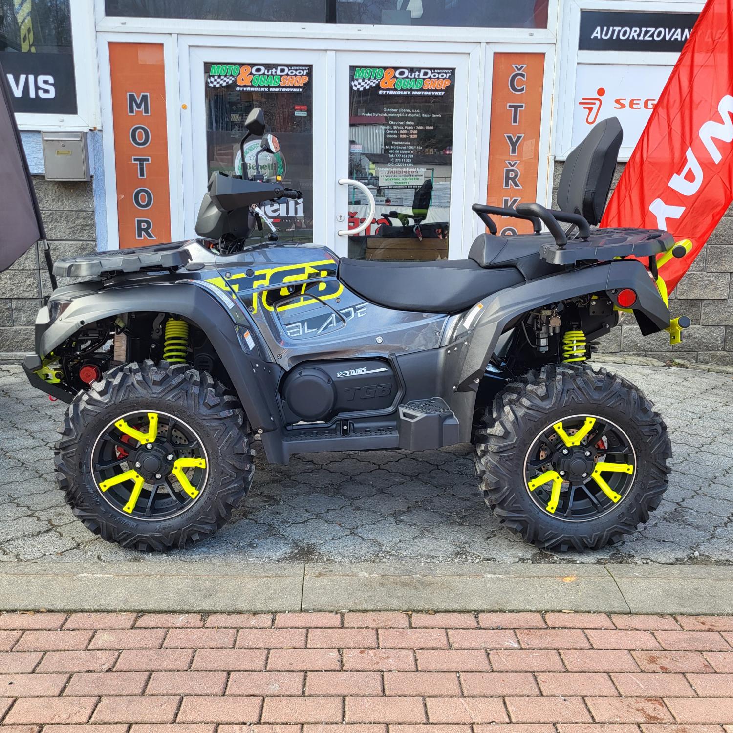 Špičkový Blade 1000 LTX MAX EPS LIMITED je vybavený originálním továrním zadním nárazníkem TGB ve svítivě žluté barvě. Velký barevný TFT displej s denním a nočním režimem, který navíc nově disponuje i Bluetooth připojením k mobilnímu telefonu. Pozornost upoutají LED zadní světla s dynamickou funkcí blikačů. Výkon této vydařené čtyřkolce dodává vůbec nejsilnější motor značky TGB, a samozřejmě nechybí nic z toho, co dělá Blada 1000 LTX tak oblíbeným: pohon 2x4/4x4 s uzamykatelnými diferenciály, zesílená automatická převodovka s japonskými komponenty, posilovač řízení s variabilním účinkem, prodloužený podvozek s dostatkem místa pro dva a tažné zařízení. Vydařený vzhled nového modelu podtrhují LED-Matrixové světlomety a atraktivní kola s barevně odlišenými segmenty.
