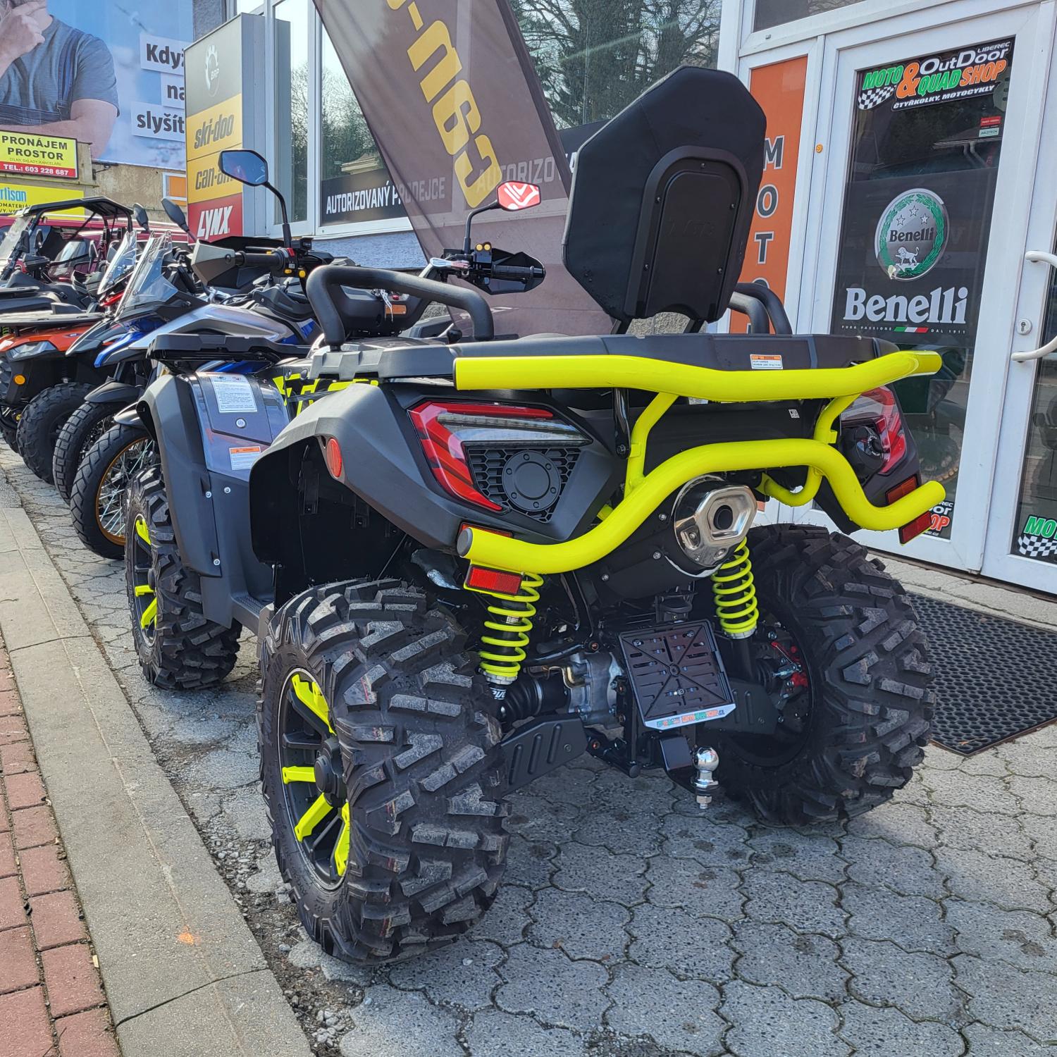 Homologované tažné zařízení, elektrické přepínání pohonu 2x4/4x4 se dvěma uzamykatelnými diferenciály (L7e), třírežimový posilovač řízení s variabilním účinkem, špičkové tlumiče EVO, pancéřované brzdové hadičky, atraktivní 14palcové hliníkové disky, značkové pneumatiky Maxxis Bighorn, chrániče rukou, robustní přední rám, kompozitové nosiče zavazadel vpředu i vzadu, samostatné sedadlo pro spolujezdce s opěrkou zad a madly, opěrky nohou pro spolujezdce, vodotěsný naviják 3000lbs, 12V zásuvka, Full-LED osvětlení