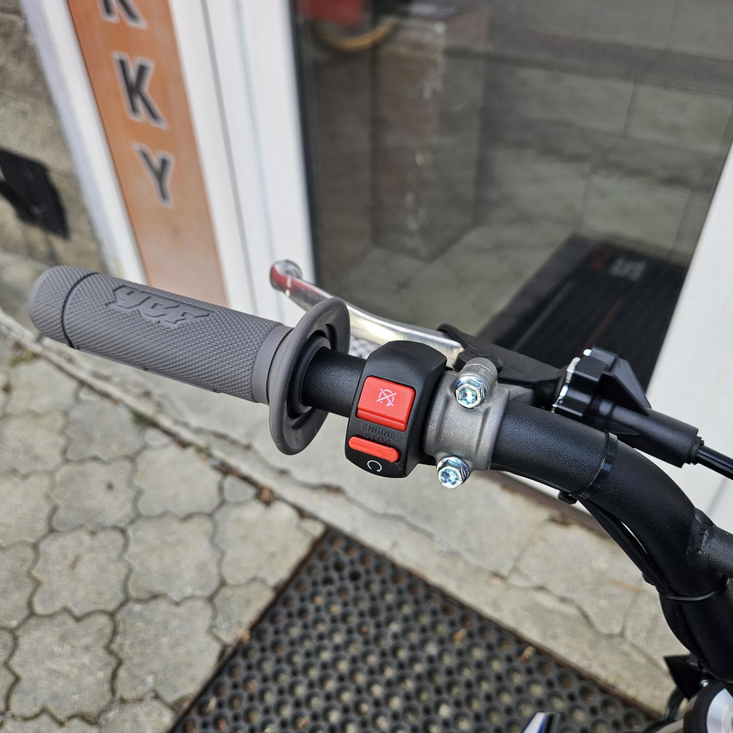 YCF START 125, nastavitelný plyn, těsnicí podložka pro řízení, horní svorka s 3 polohami pro uchycení řídítek