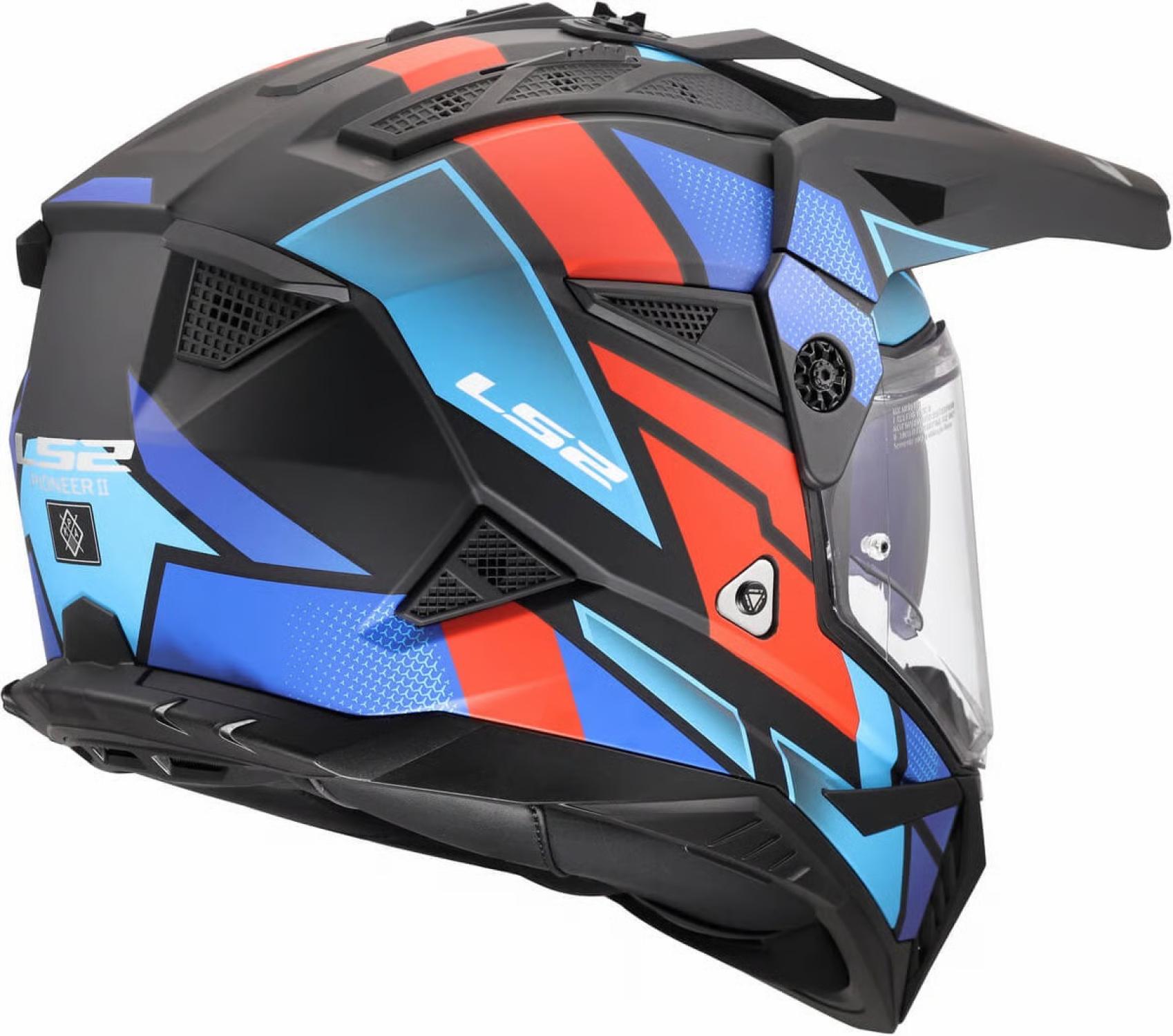 Moderní helma MX702 Pioneer II pro enduro, adventure, supermoto a čtyřkolky nabízí vysokou variabilitu, široké možnosti využití a atraktivní design. Vyvinutá ve spolupráci s jezdci mistrovství světa MX, enduro a supermoto, helma Pioneer II MX702 těží z dlouholetých úspěchů značky LS2 ve vrcholných soutěžích a dálkových rallye. Vybavená plexištítem, slunečním štítkem a navíc i integrovanou sluneční clonou umožňuje širokou variabilitu v širokém spektru podmínek, lze jí používat s plexištítem nebo MX brýlemi. Nová přepracovaná skořepina kompatibilní s moderními chrániči krční páteře je vyrobena z inovativního patentovaného materiálu Kinetic Polymer Alloy (KPA). Přepracované účinnější větrání a příjemný antialergický kompletně vyjímatelný a pratelný interiér. Emergency Release System s rychle vyjímatelnými lícnicemi umožňuje snadné sejmutí helmy v případě nouze. Rychlé zapínání ocelovou rychlosponou.