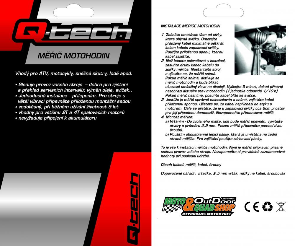 Měřič motohodin pro motocykly, čtyřkolky QTECH (černý)