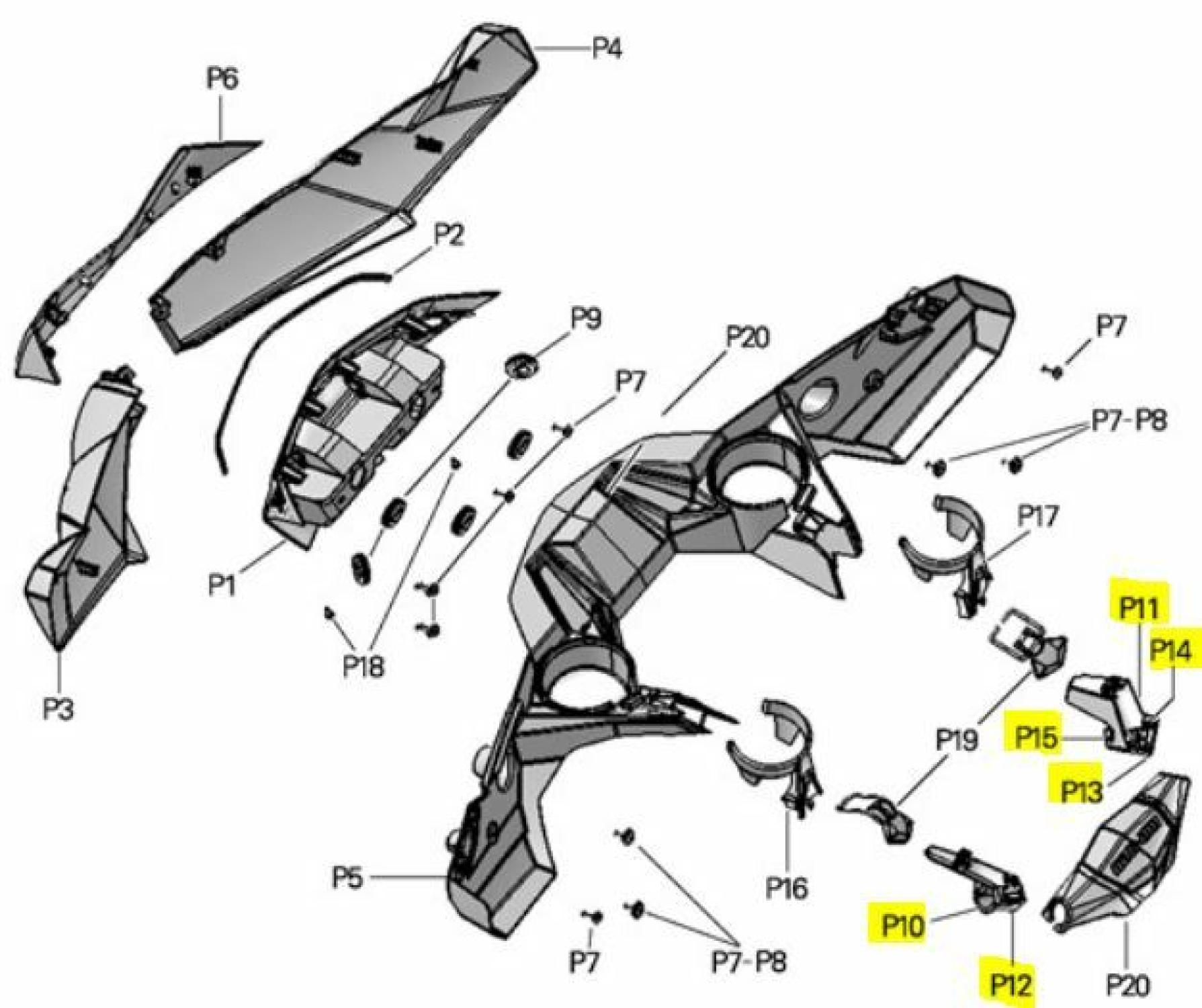 Originální díl Can‑Am pro upevnění přední kapotáže („Deluxe Fairing“).