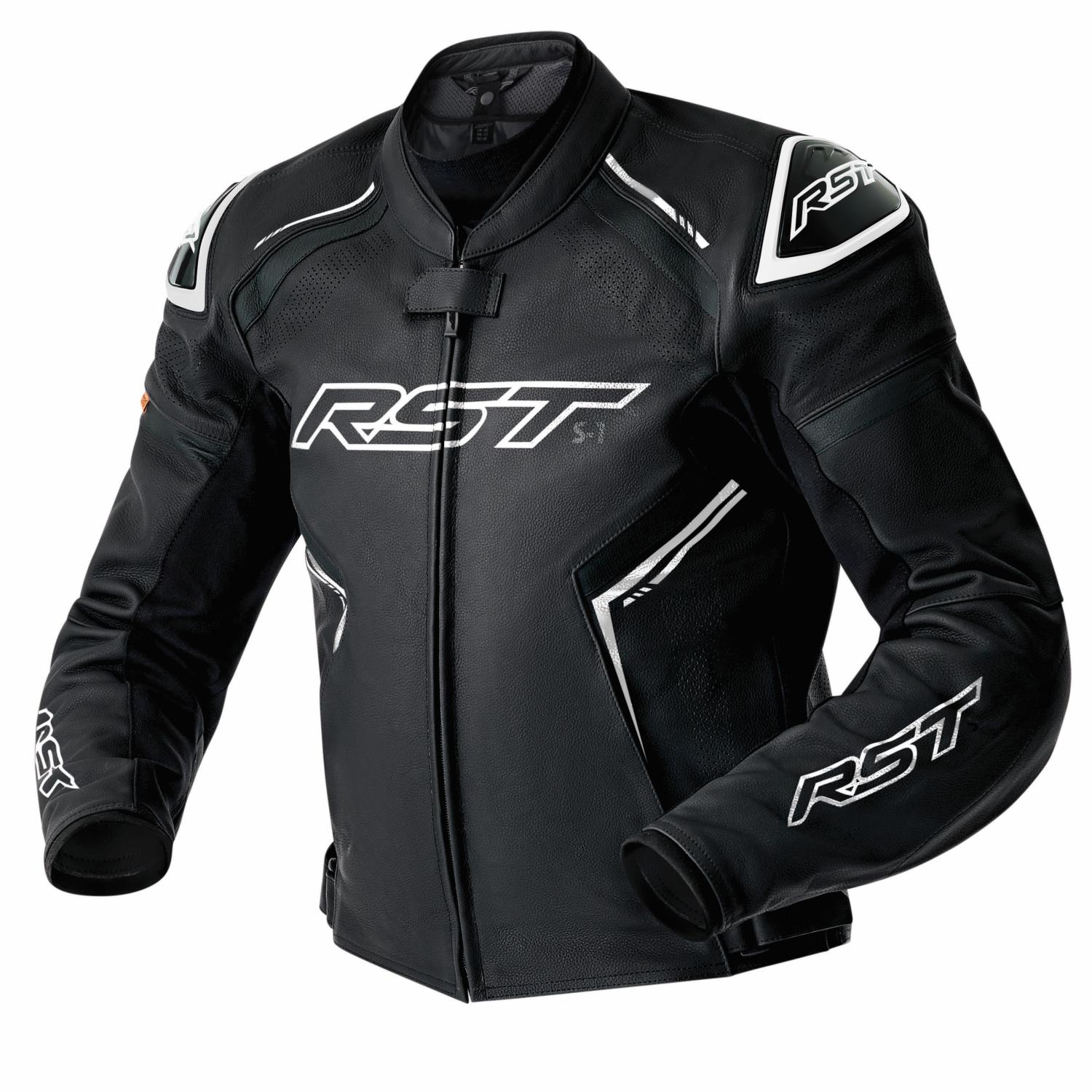 Pánská kožená bunda na motorku RST 103605 S1 D3O Leather Jacket Black / White