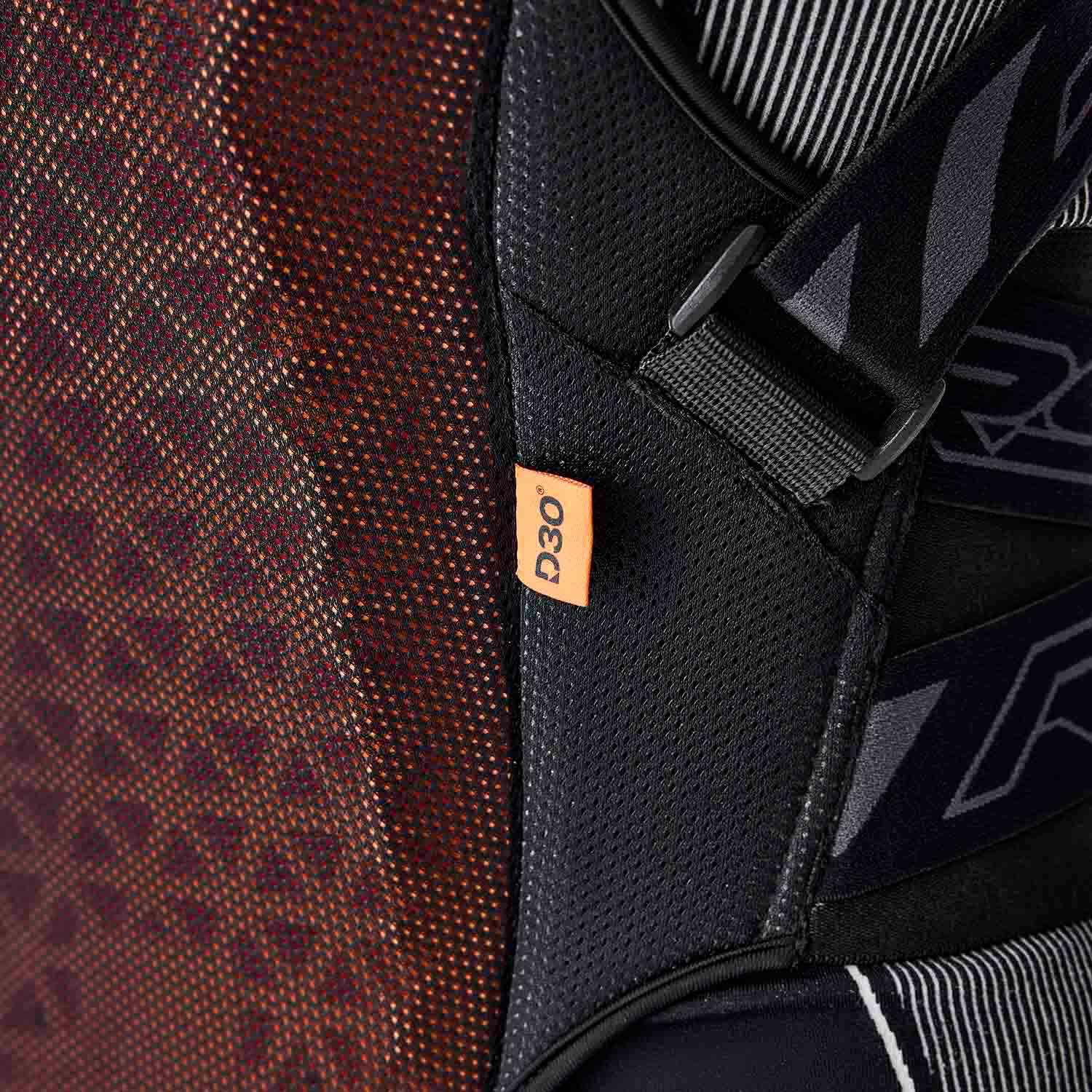 Materiál D3O® poskytuje certifikovanou ochranu podle evropských standardů, přičemž zachovává nízkou hmotnost a vysokou flexibilitu.