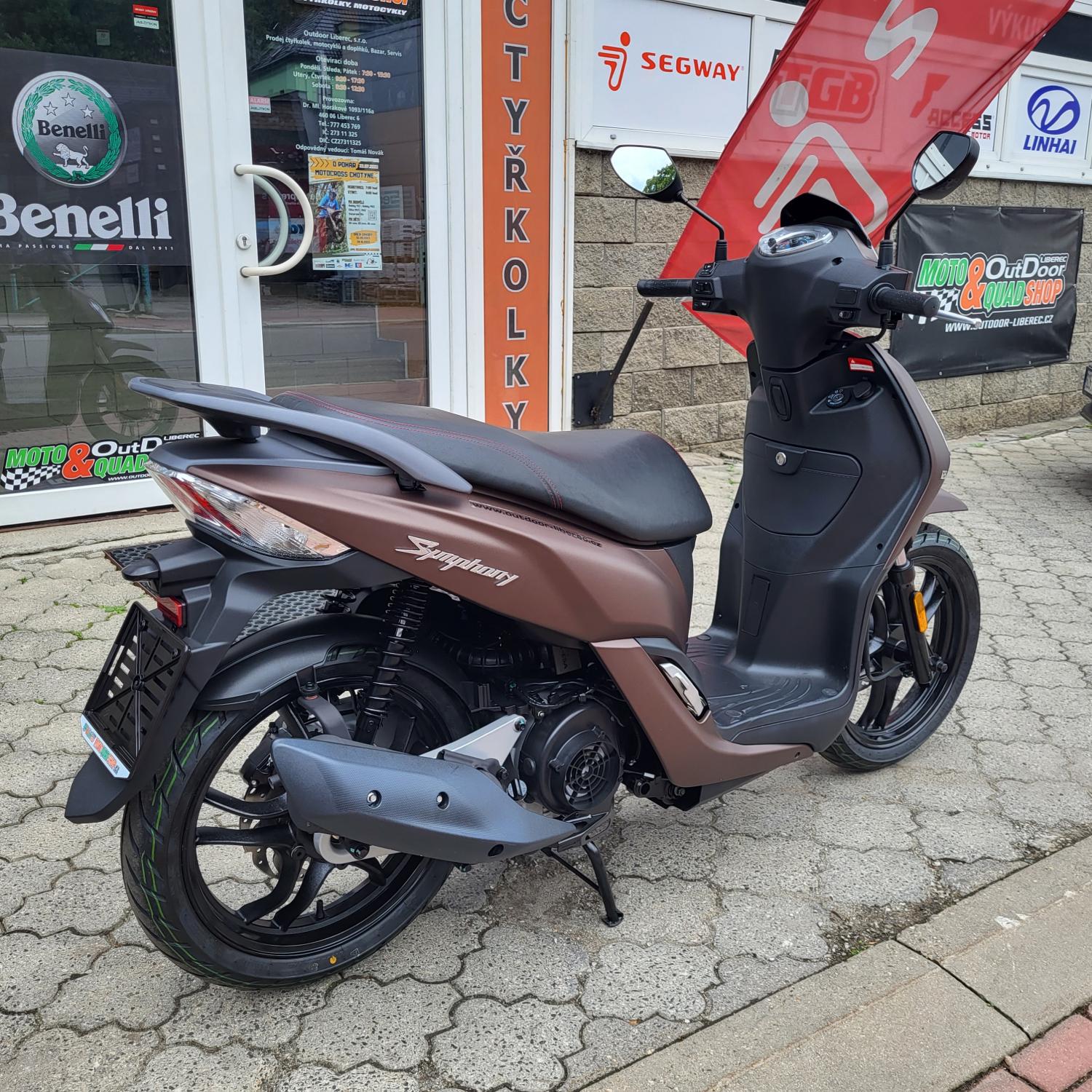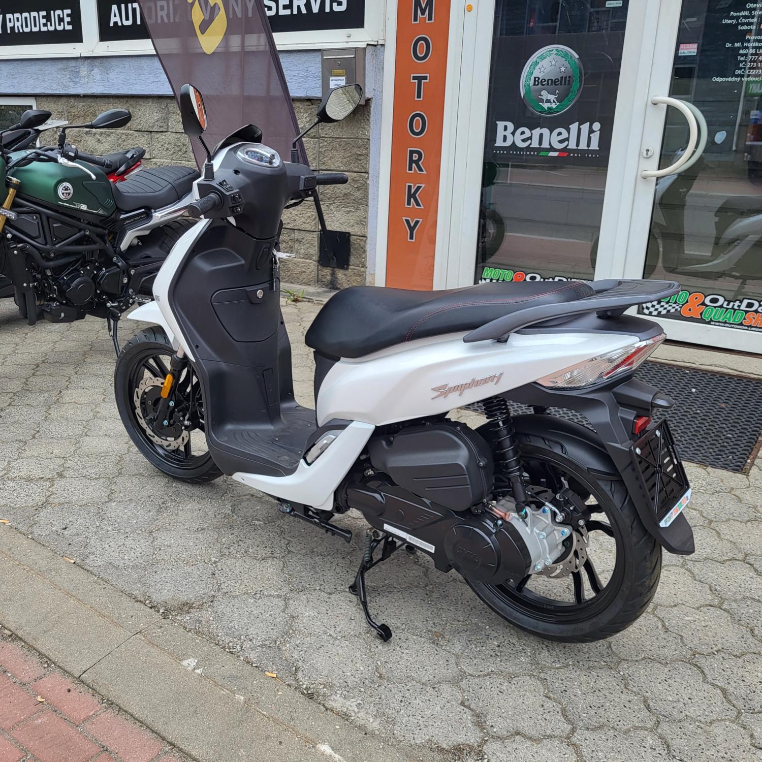 Symphony má vše, co potřebujete po Vašem skůtru – skrytý hák, plochý podlahový panel a pohodlnou jízdní pozici. Nová generace Symphony si tyto funkce nejen ponechává, ale je vybavena také LED hlavním světlometem, LED pozičními světly a zcela novým rychloměrem. Díky těmto změnám je Symphony atraktivnější, konkurenceschopnější a splňuje také emisní normu Euro V.